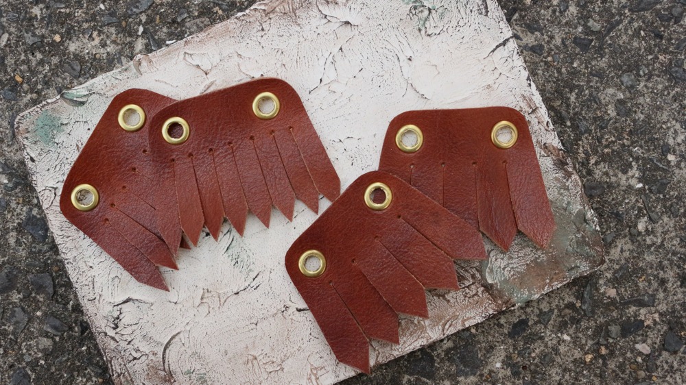 ハトメは真鍮ゴールド。デカギザとノーマルギザ。