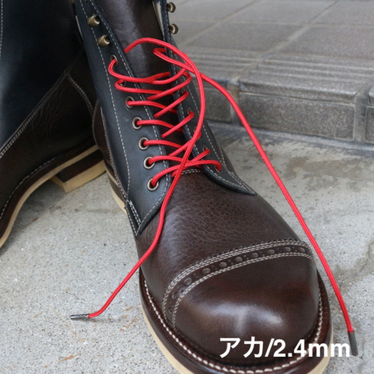 発色の良いアカとキイロのパラコード靴紐はブーツとの相性抜群です。