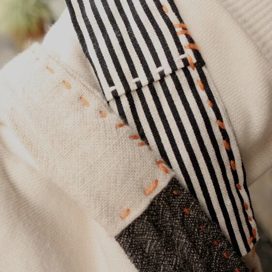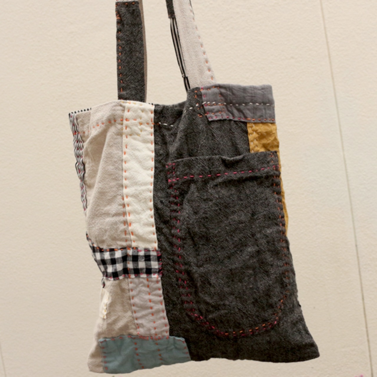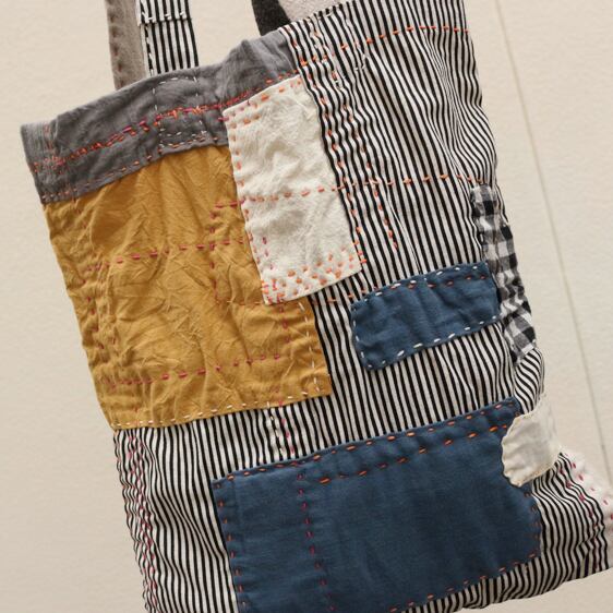 裏地なし。丸見えの迷路みたいなステッチがワクワクします。