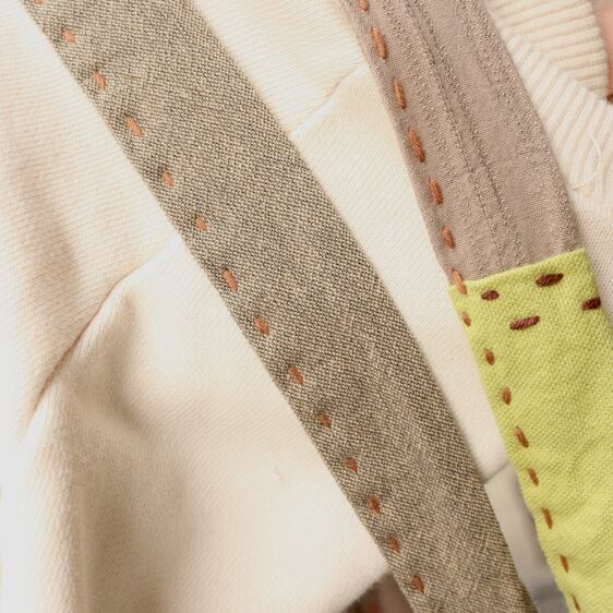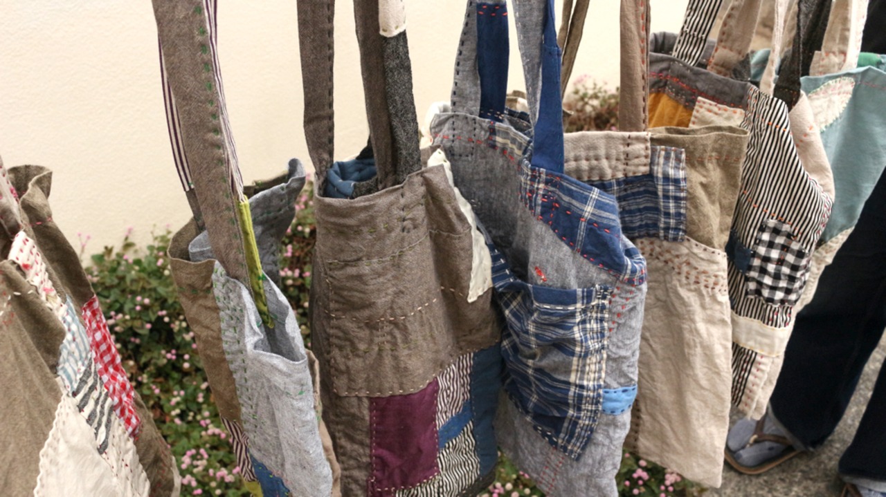 裏地なし。丸見えの迷路みたいなステッチがワクワクします。