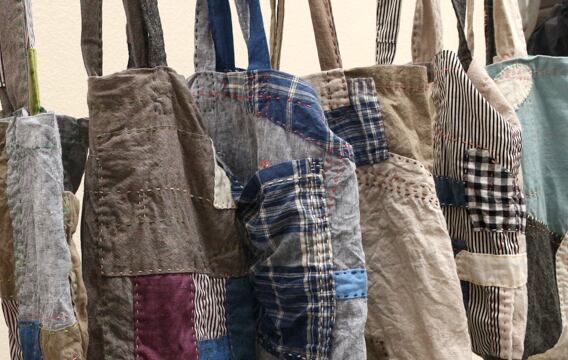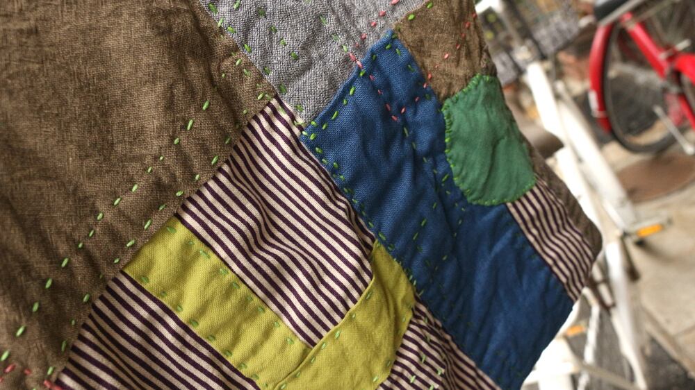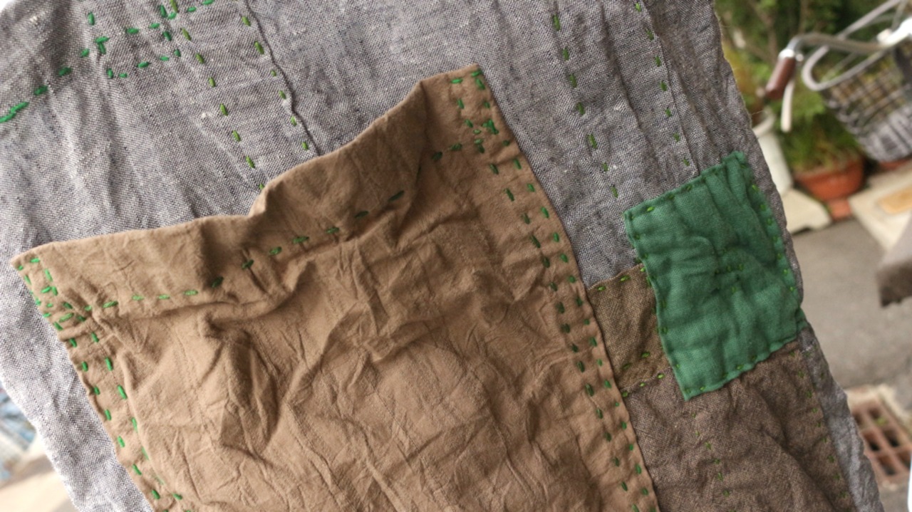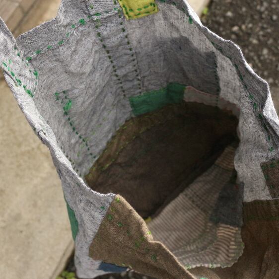 裏地なし。丸見えの迷路みたいなステッチがワクワクします。