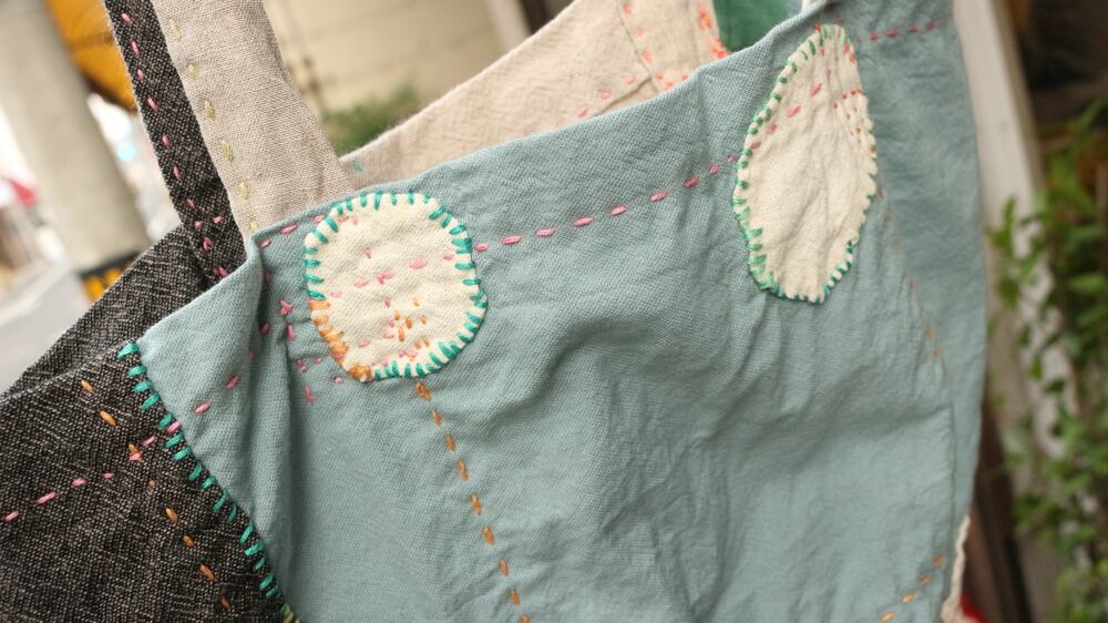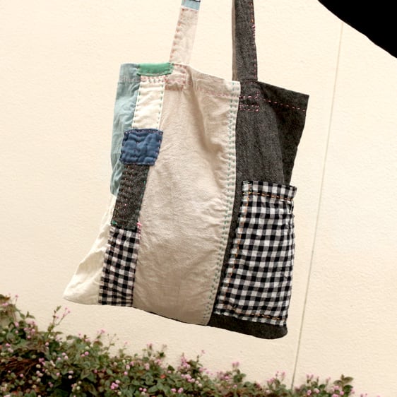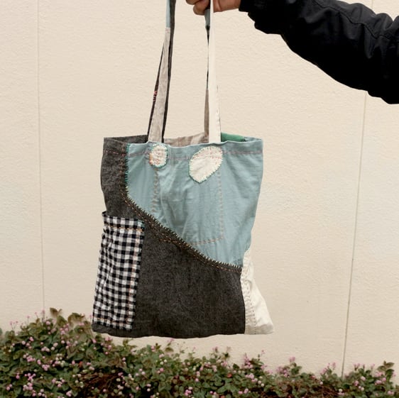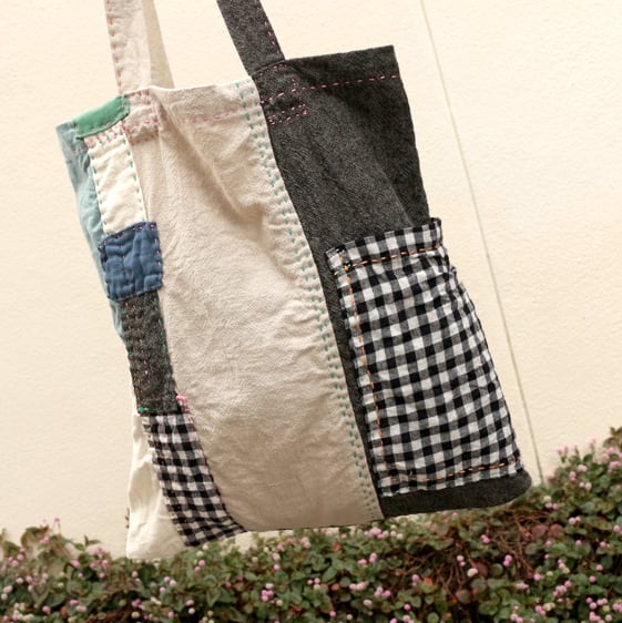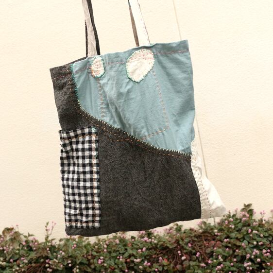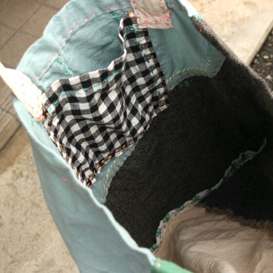いろんな生地をつぎはぎしました。
