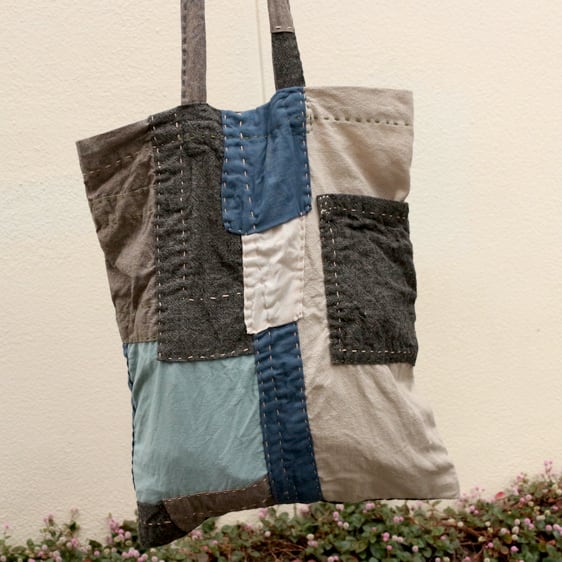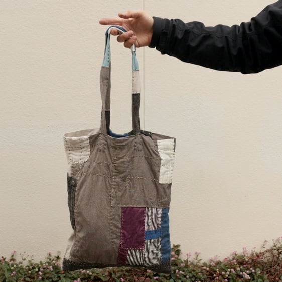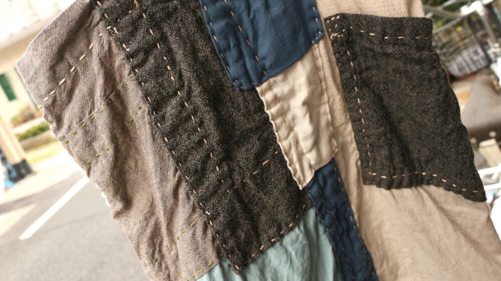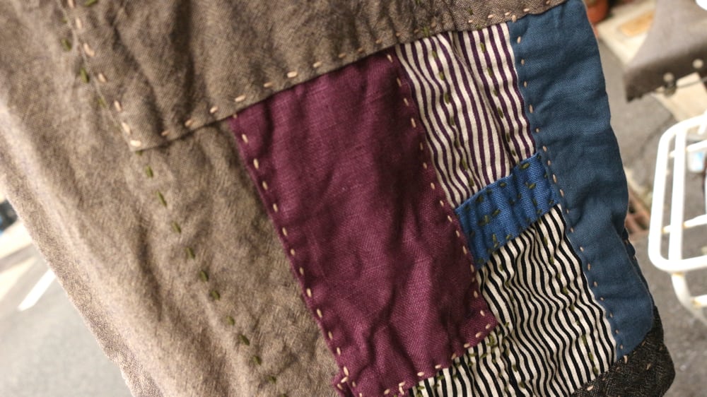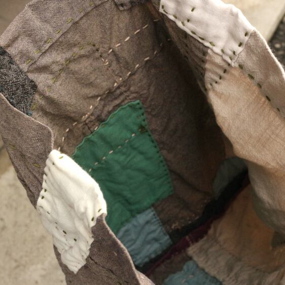 裏地なし。丸見えの迷路みたいなステッチがワクワクします。