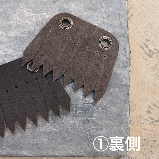 ブーツや外羽根シューズの一番下のシューホールに靴紐で通して装着します。