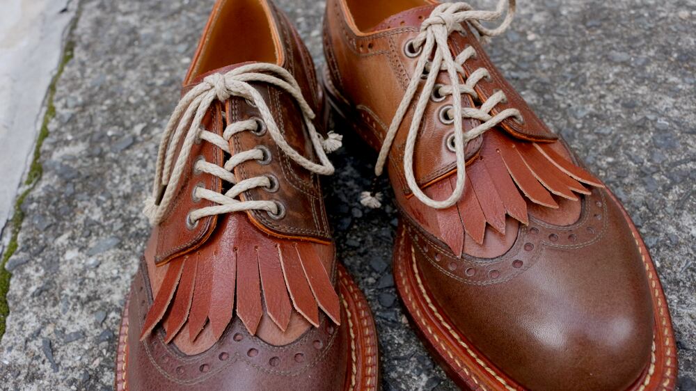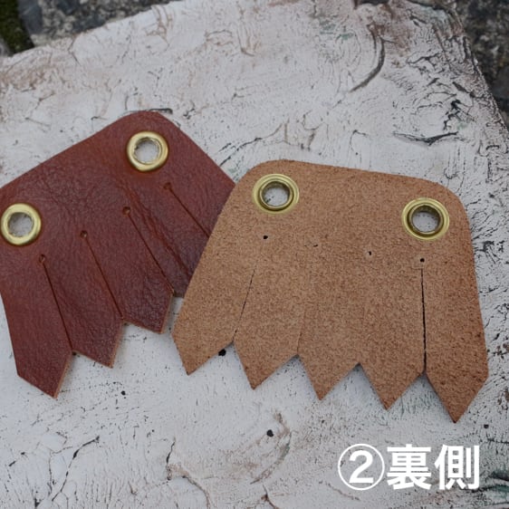 ブーツや外羽根シューズの一番下のシューホールに靴紐で通して装着します。