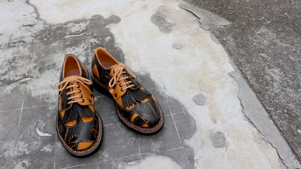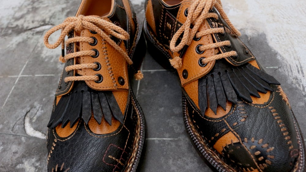ブーツや外羽根シューズの一番下のシューホールに靴紐で通して装着します。