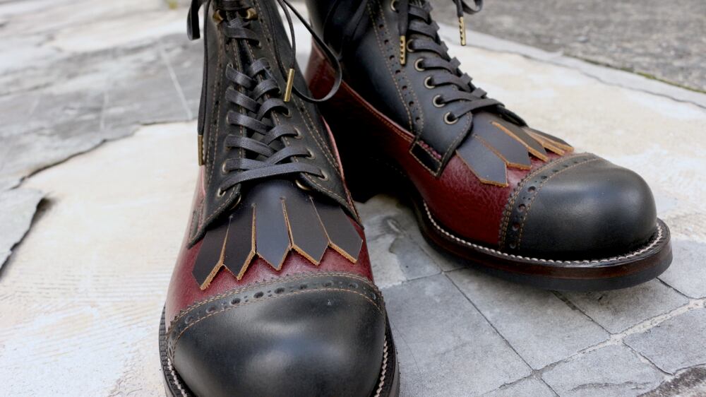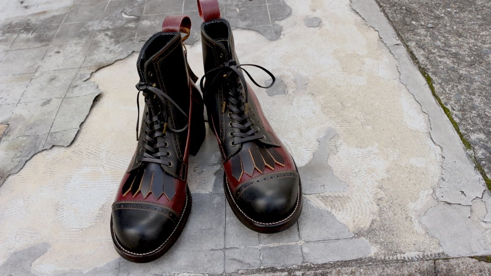 ブーツや外羽根シューズの一番下のシューホールに靴紐で通して装着します。